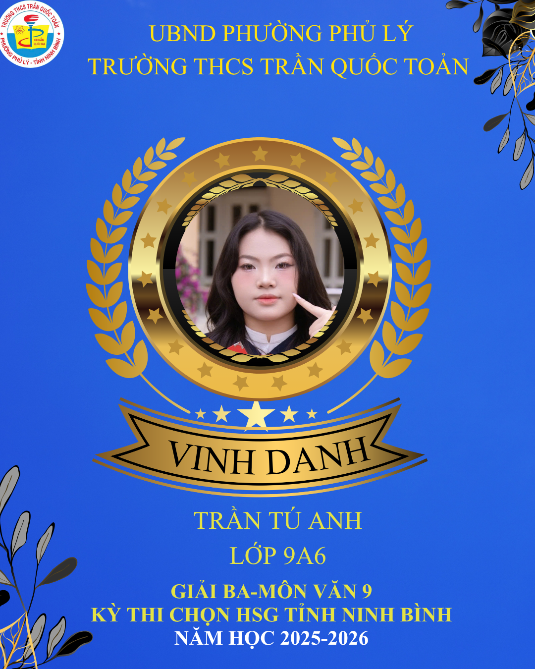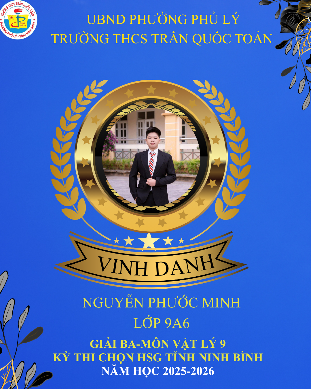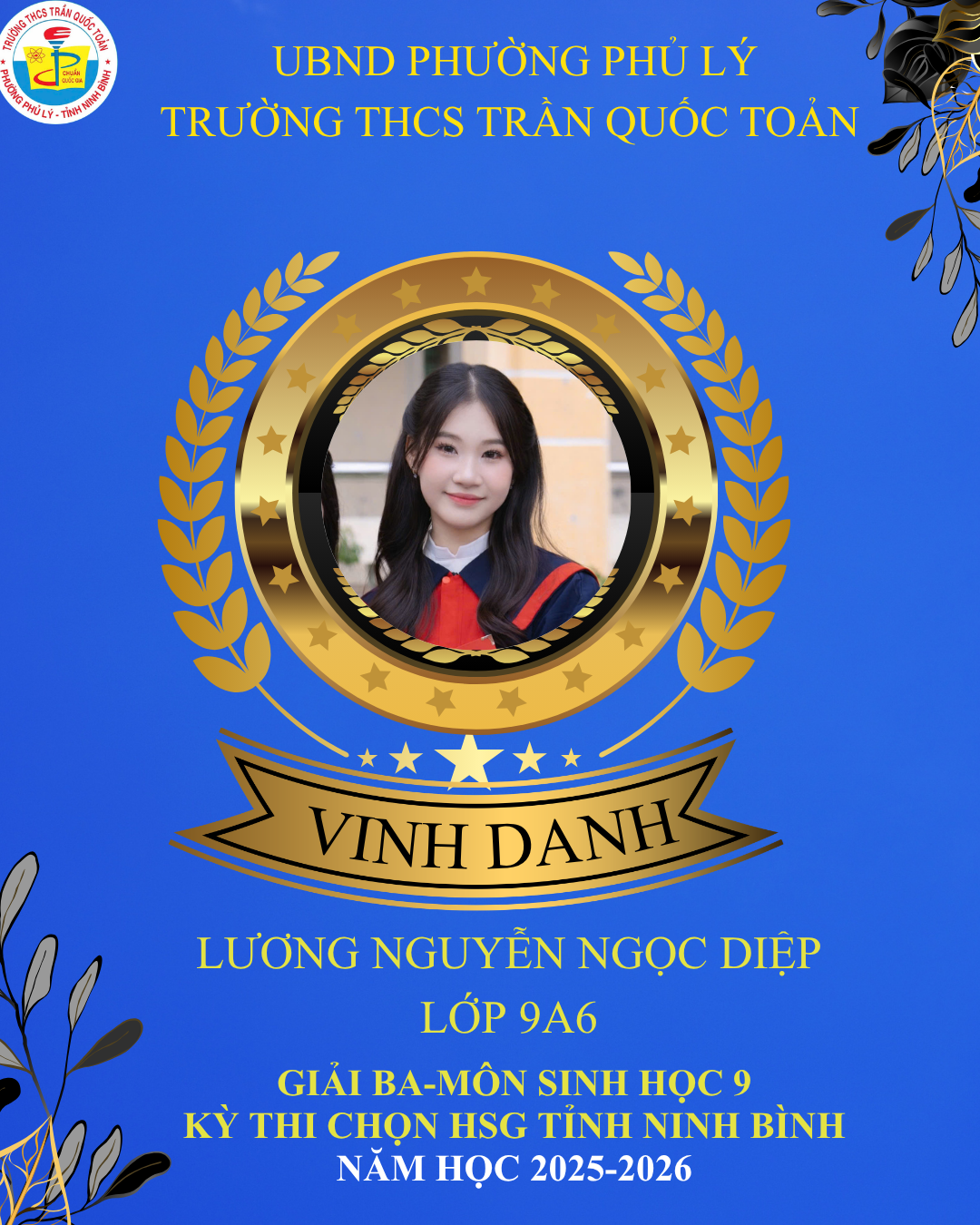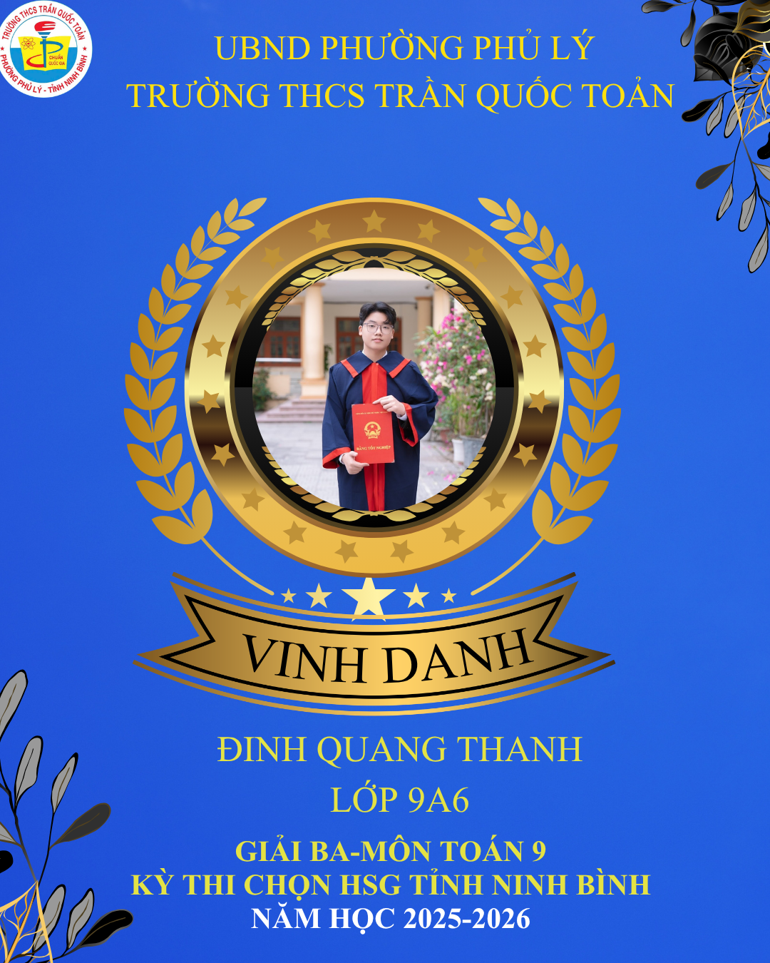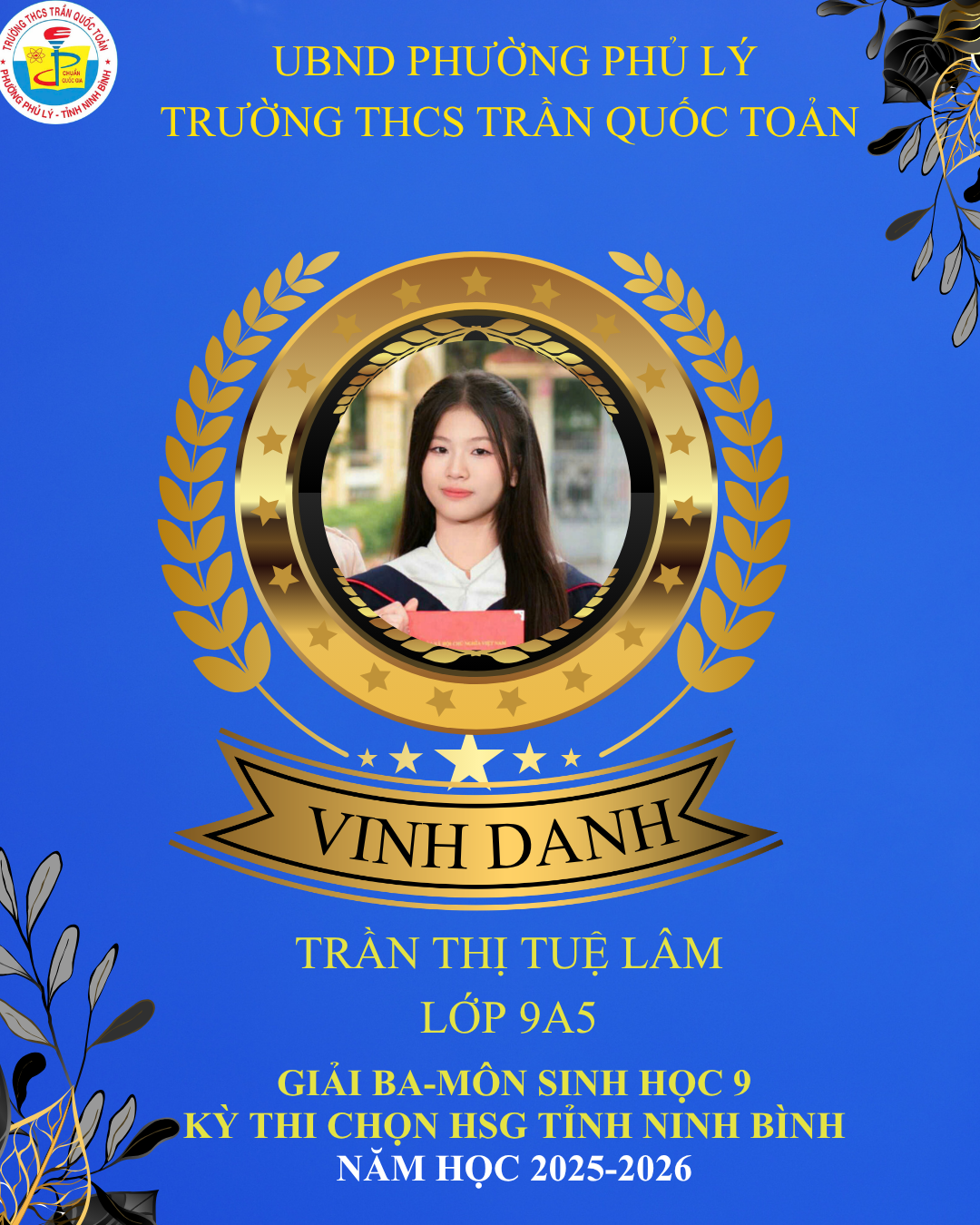 🌟🌟🌟Tiếp nối truyền thống hiếu học và bề dày thành tích đáng tự hào, Trường THCS Trần Quốc Toản vinh dự khi có 3️⃣0️⃣ học sinh xuất sắc đạt giải tại Kỳ thi chọn học sinh giỏi THCS cấp tỉnh năm học 2025–2026.
