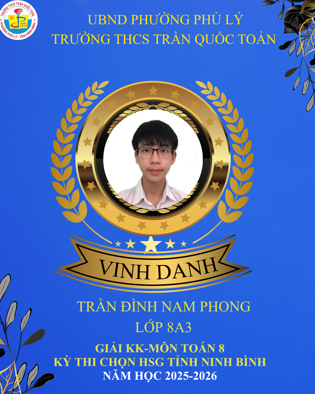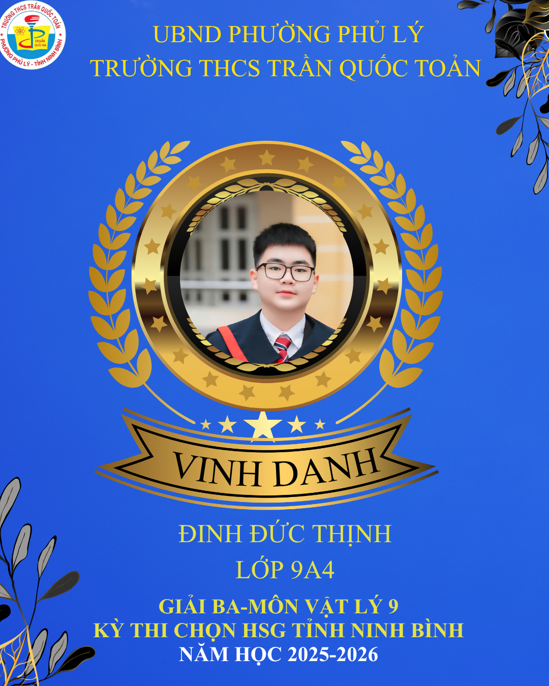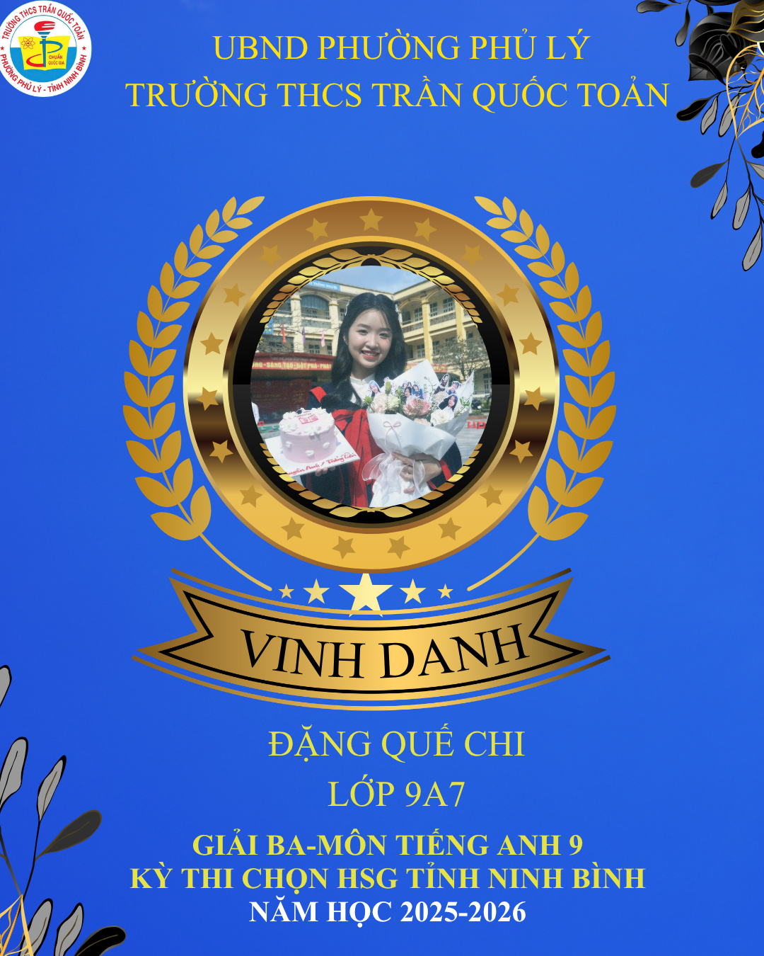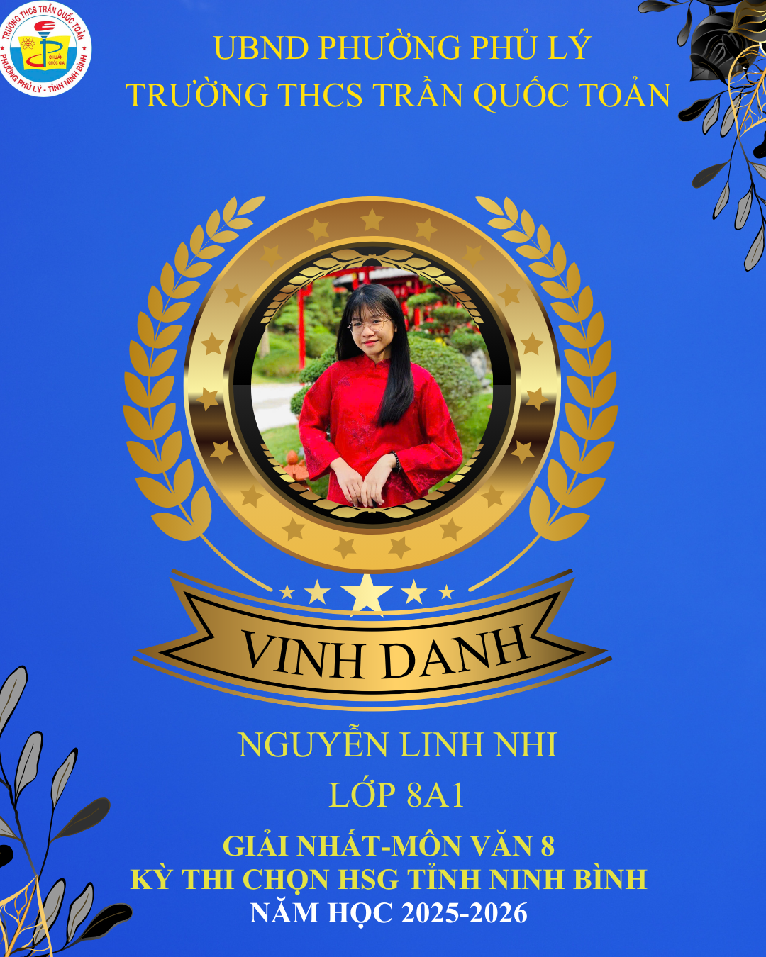 🌟🌟🌟Tiếp nối truyền thống hiếu học và bề dày thành tích đáng tự hào, Trường THCS Trần Quốc Toản vinh dự khi có 3️⃣0️⃣ học sinh xuất sắc đạt giải tại Kỳ thi chọn học sinh giỏi THCS cấp tỉnh năm học 2025–2026.