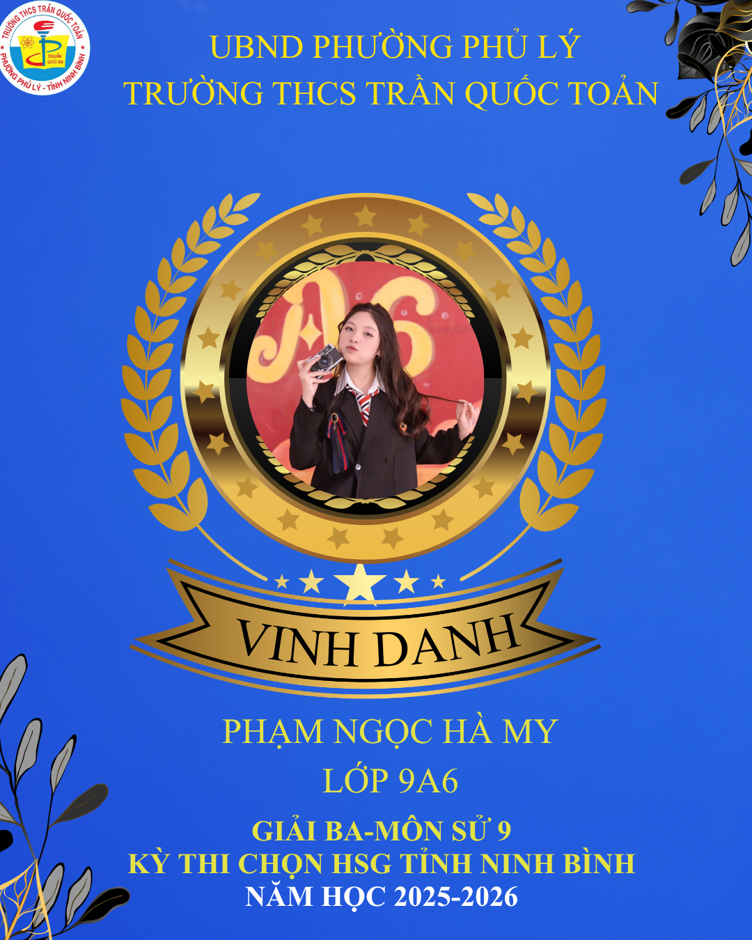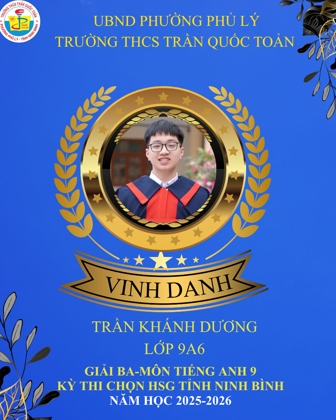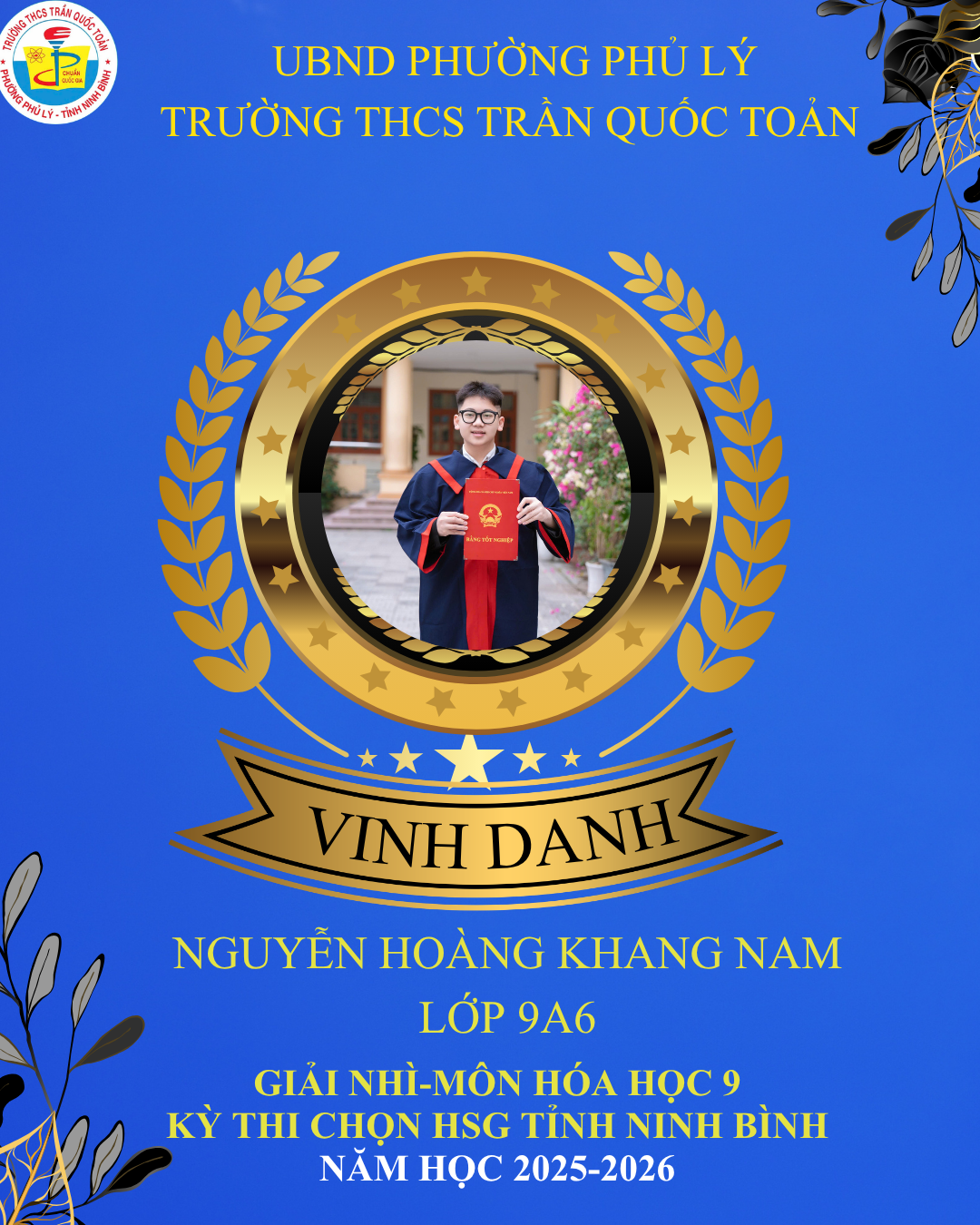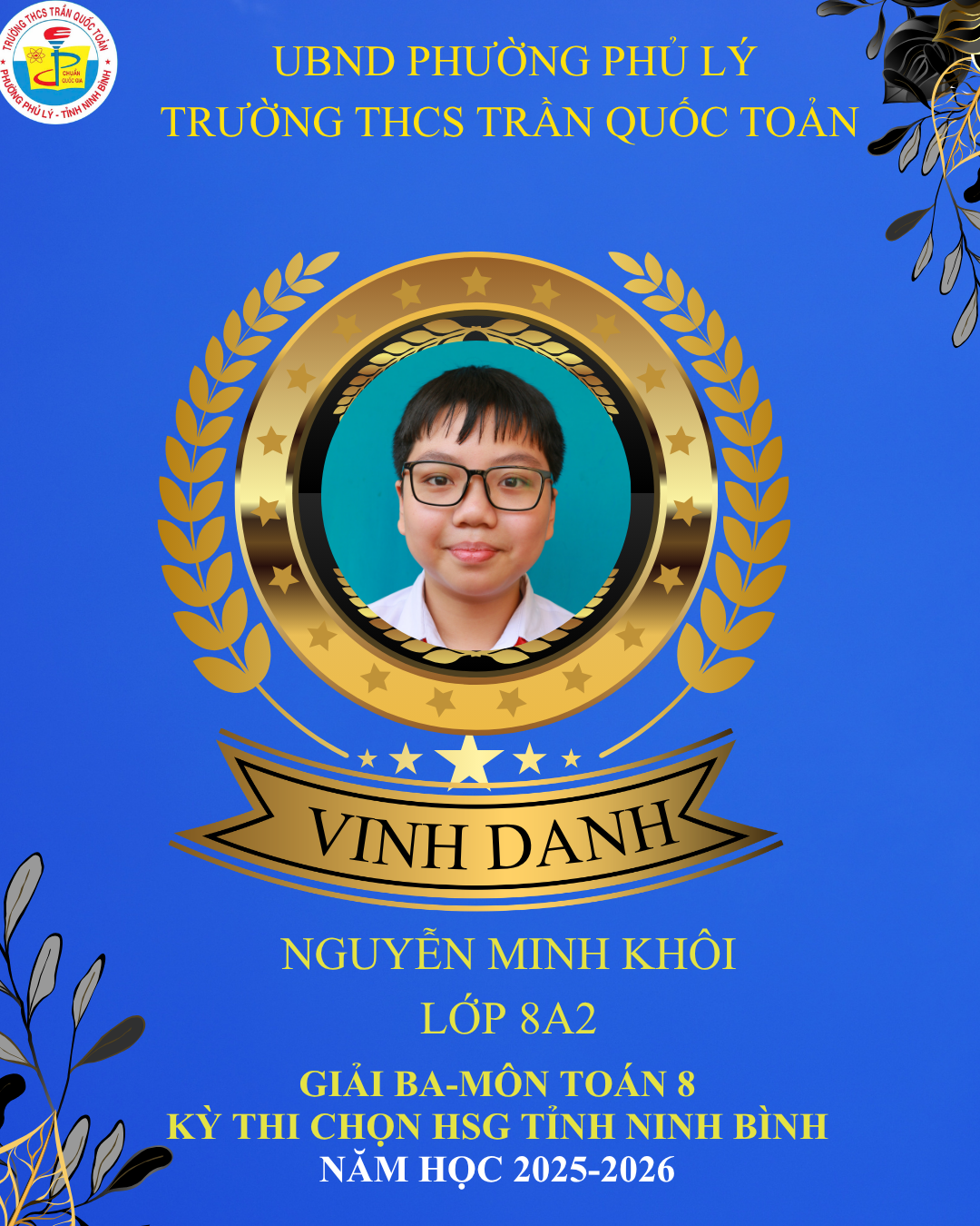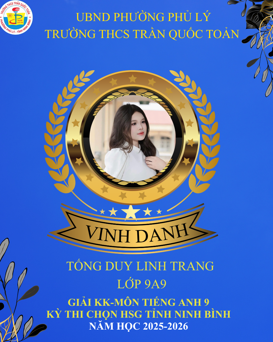 🌟🌟🌟Tiếp nối truyền thống hiếu học và bề dày thành tích đáng tự hào, Trường THCS Trần Quốc Toản vinh dự khi có 3️⃣0️⃣ học sinh xuất sắc đạt giải tại Kỳ thi chọn học sinh giỏi THCS cấp tỉnh năm học 2025–2026.