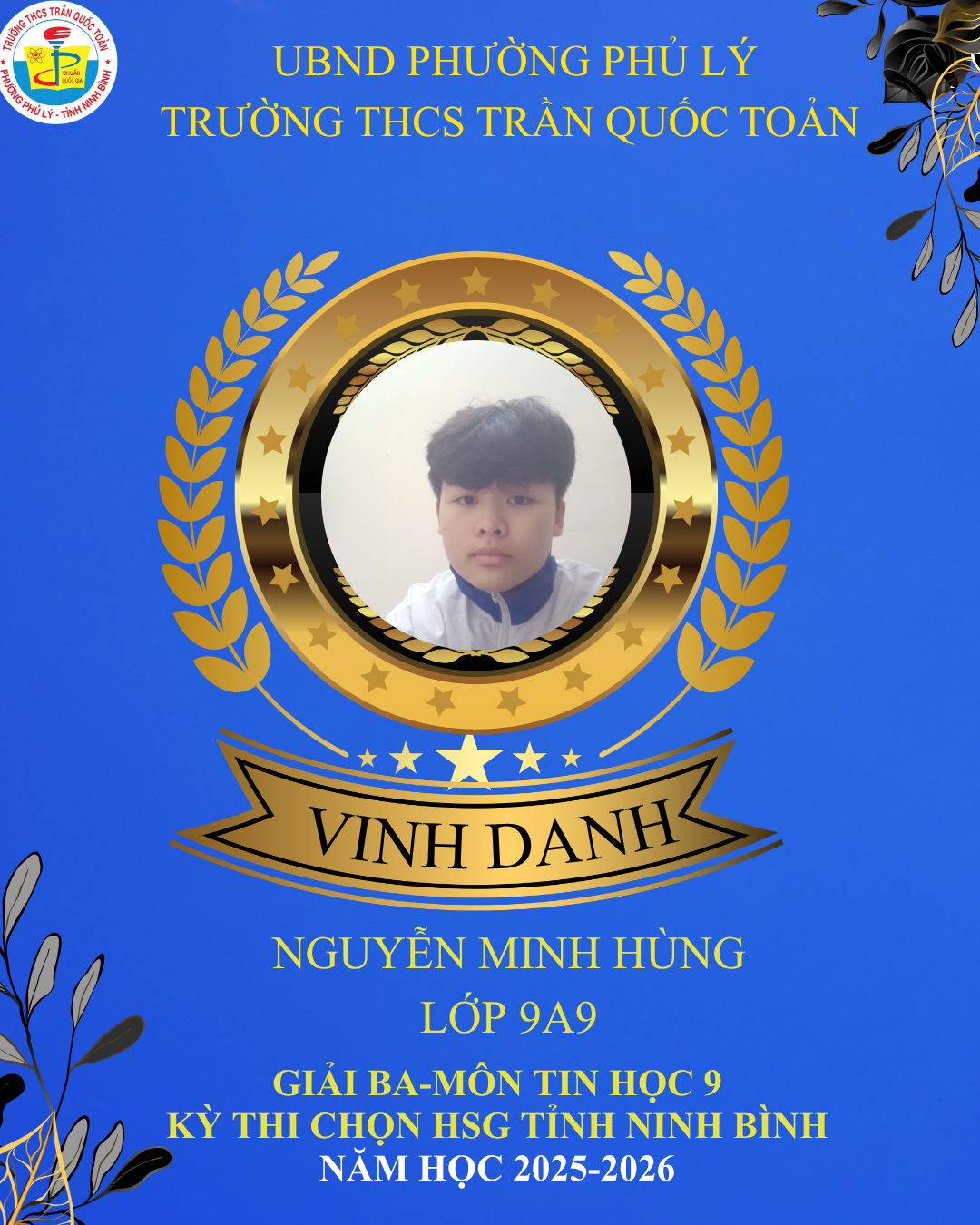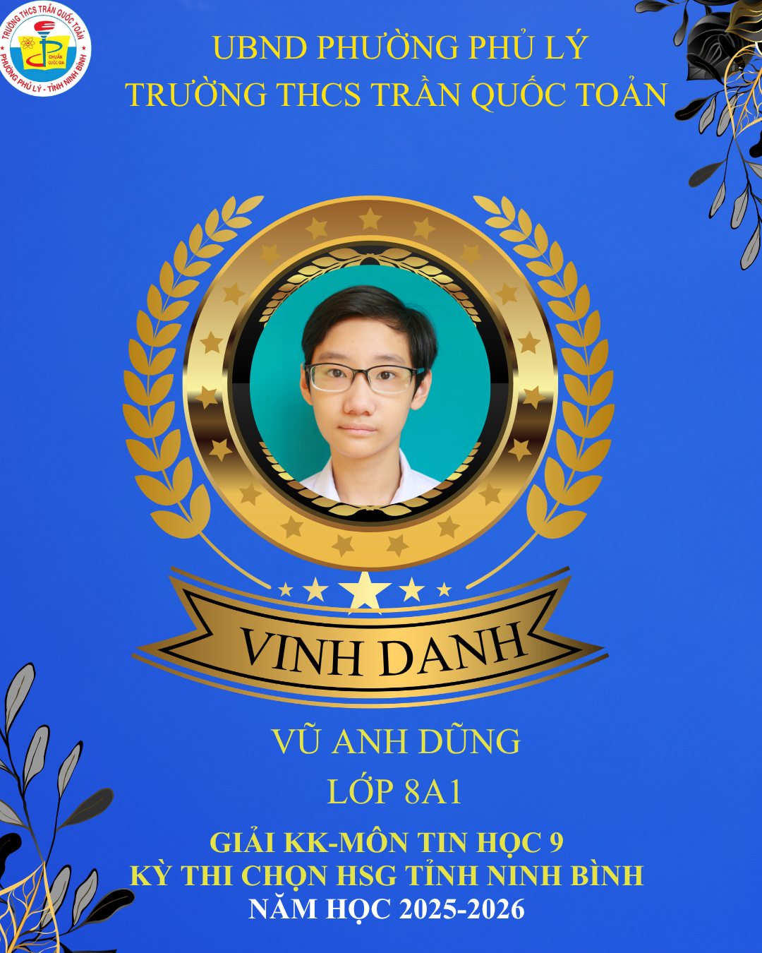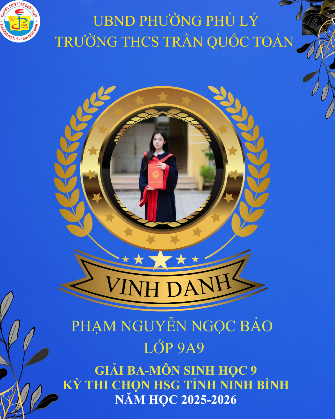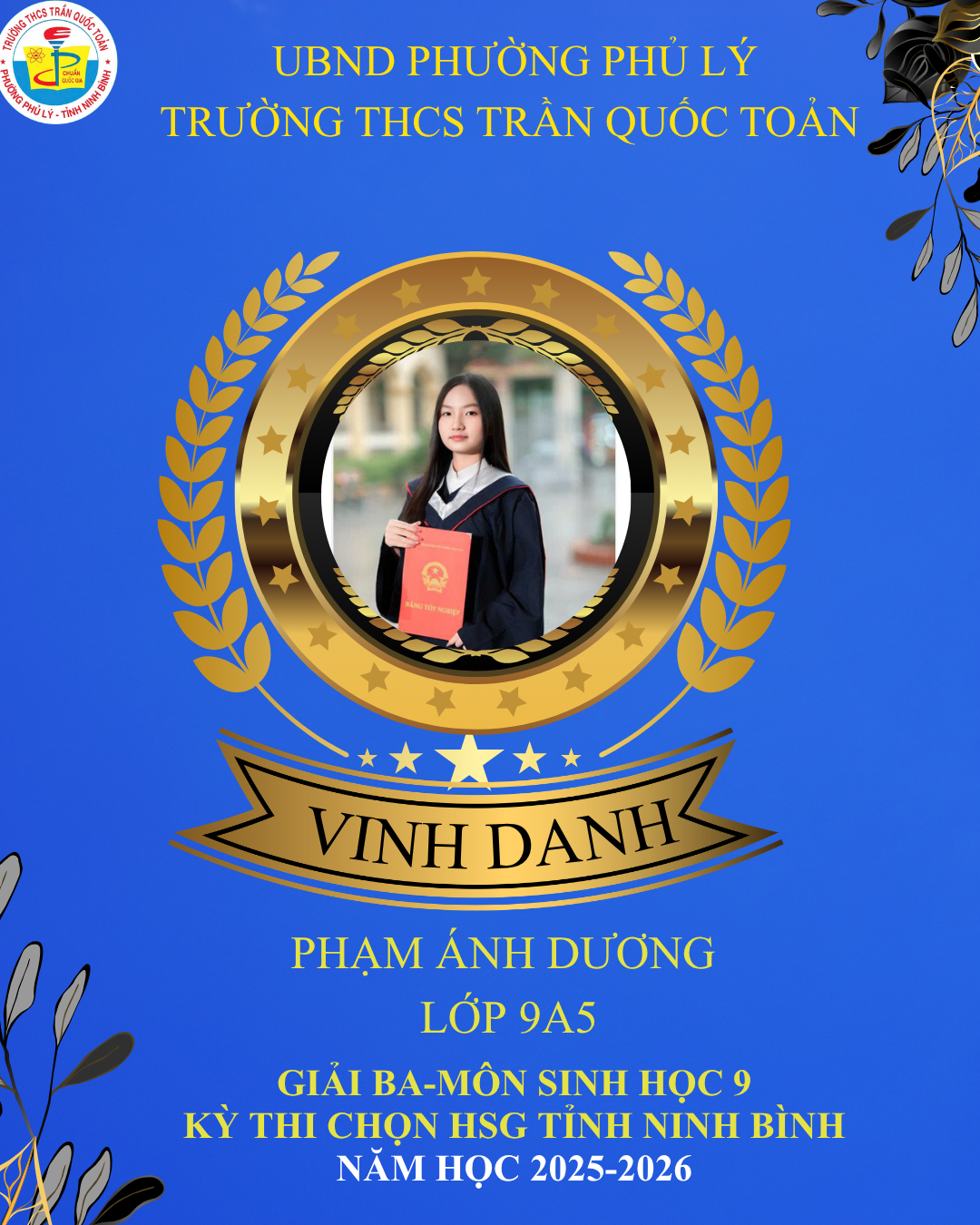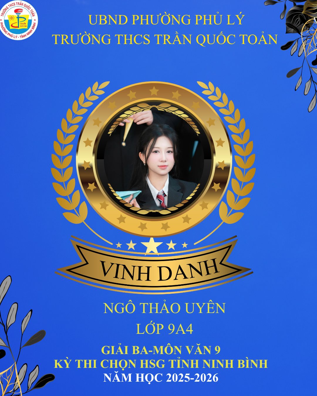 🌟🌟🌟Tiếp nối truyền thống hiếu học và bề dày thành tích đáng tự hào, Trường THCS Trần Quốc Toản vinh dự khi có 3️⃣0️⃣ học sinh xuất sắc đạt giải tại Kỳ thi chọn học sinh giỏi THCS cấp tỉnh năm học 2025–2026.