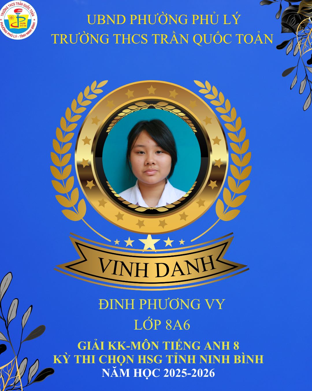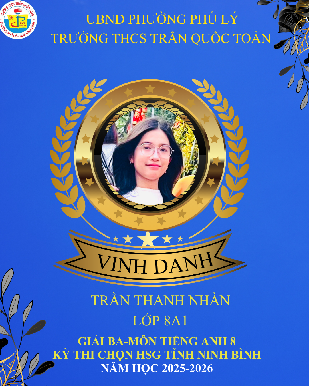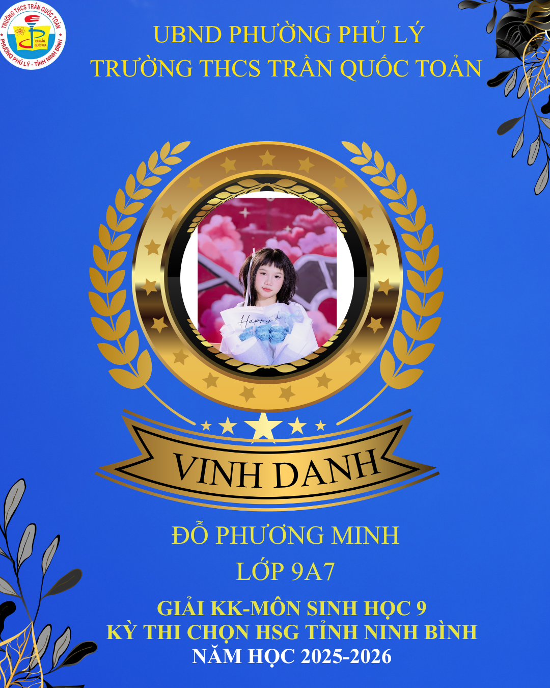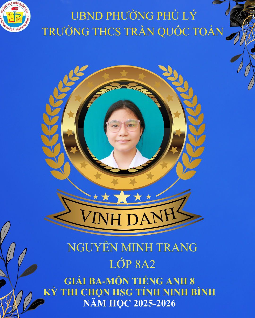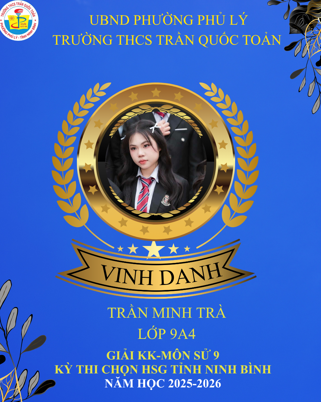 🏡 Trường THCS Trần Quốc Toản chúc mừng thành tích vượt trội của các em học sinh đã đạt giải của kỳ thi, trong đó: